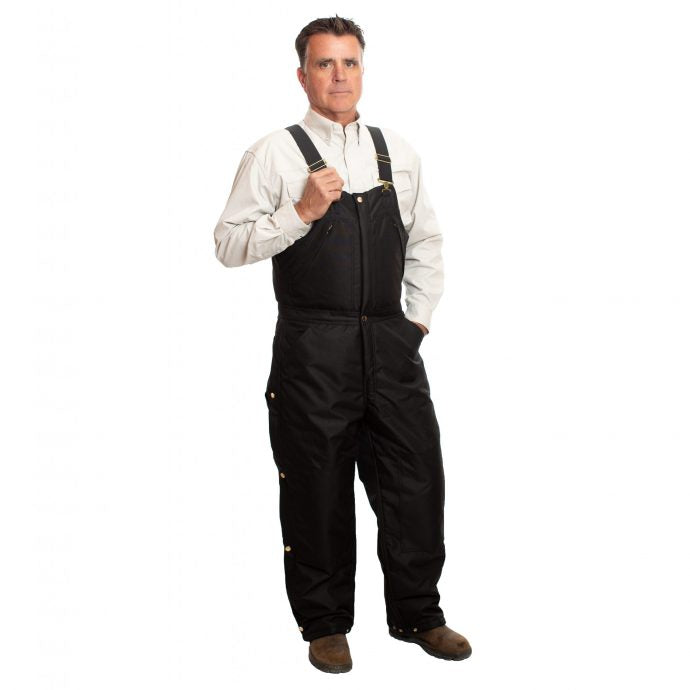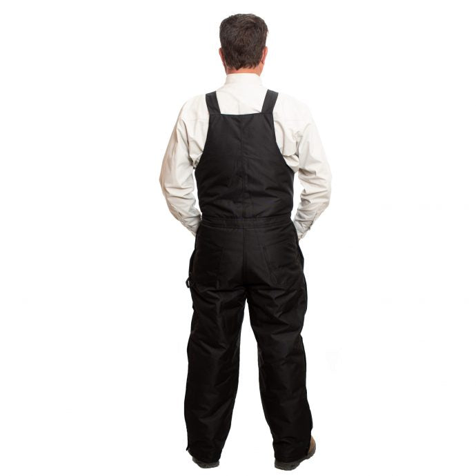 The Wyoming Traders Oxford bib is made with our waterproof nylon fabric and quilted polyester lining. The bibs have adjustable elastic suspender straps and a two way torso zipper. There are two chest pockets with zippers and two fleece lined hand pockets with a coin pocket on the right hip. Both legs have tool pockets and there are two back pockets on the rear of the bib. Both legs have a two way zipper with snapped storm flaps for easy step in and go. Available in regular and tall sizes. Tall sizes are longer in the torso.