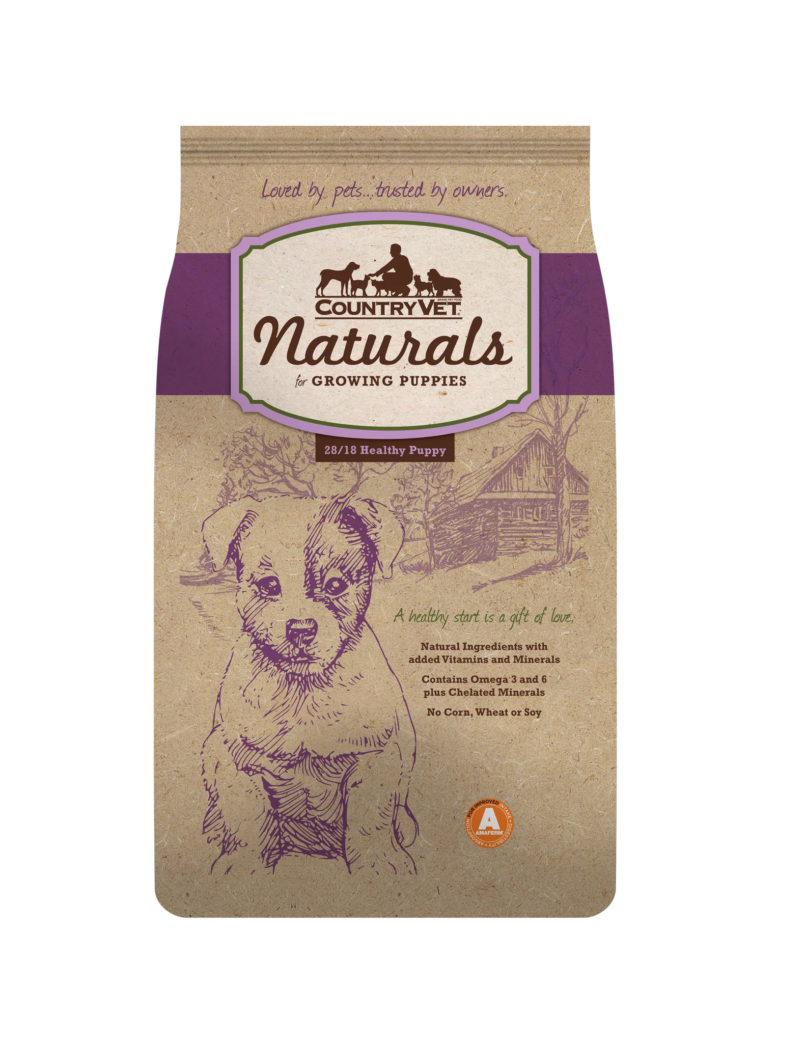 Give your growing puppy a delicious all-natural start with Country Vet Naturals Puppy 28-18. This protein-packed puppy food contains prebiotic and probiotic cultures with highly-digestible ingredients to support digestive health. Made without fillers like corn, wheat or soy, wholesome chicken meal is the first ingredient. It’s complete and balanced food with added vitamins, minerals and DHA for your pup’s healthiest start in life.