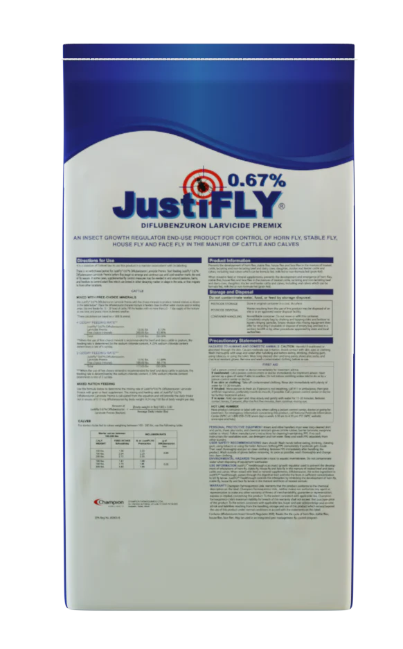 Cattle simply ingest the larvicide as the feed on the treated mineral. It passes through the animal and starts to work on flies in the cattle manure.