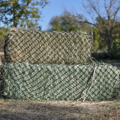 The 3-strand Bale Net (West Coast Net) is perfect for larger, 100+ 3-string bales. It can also hold 2+ small 2-strand square bales (60lb.) of hay.