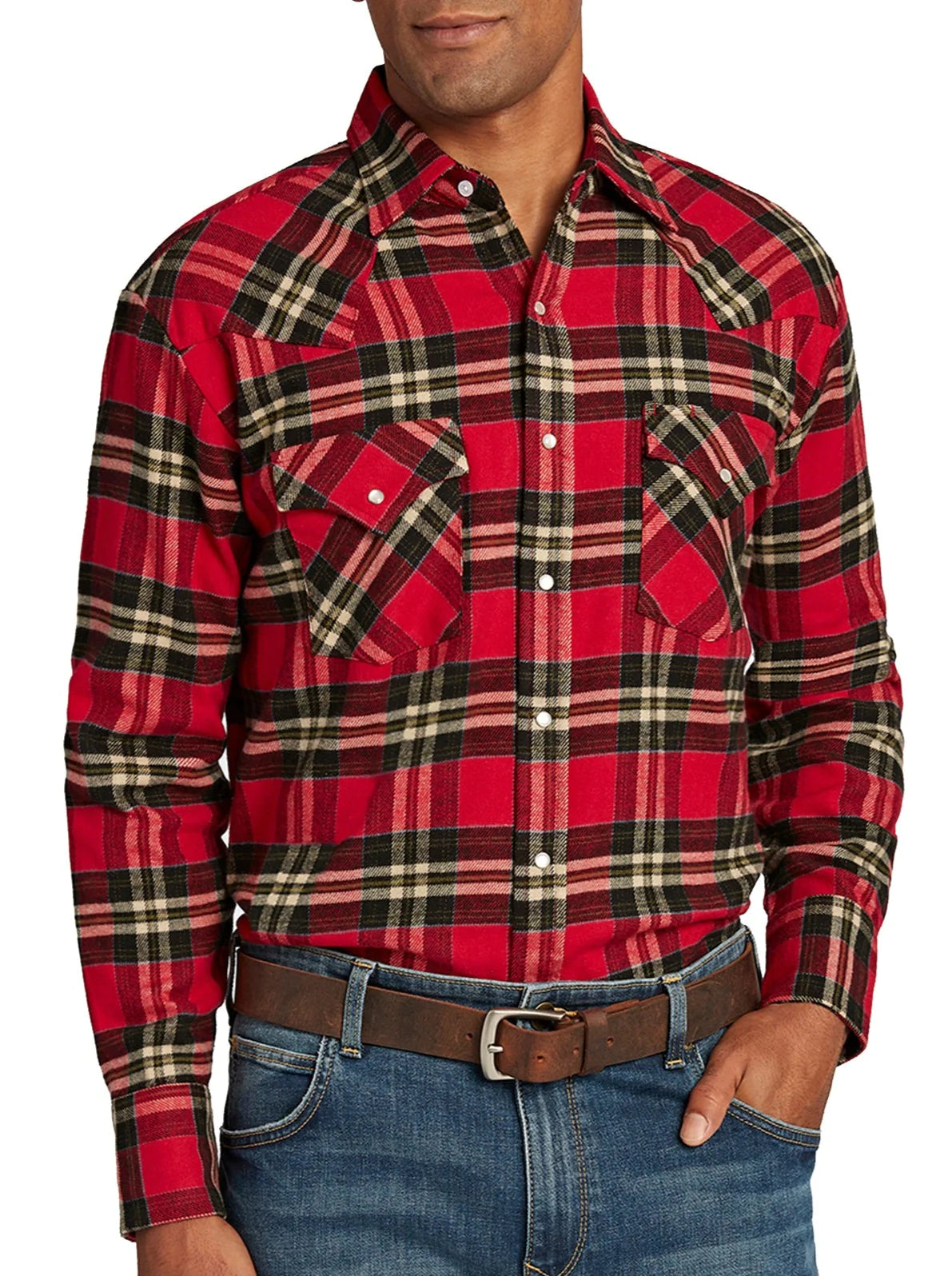 Long Sleeve Flannel Western Snap Shirt-Red/Green Fannel