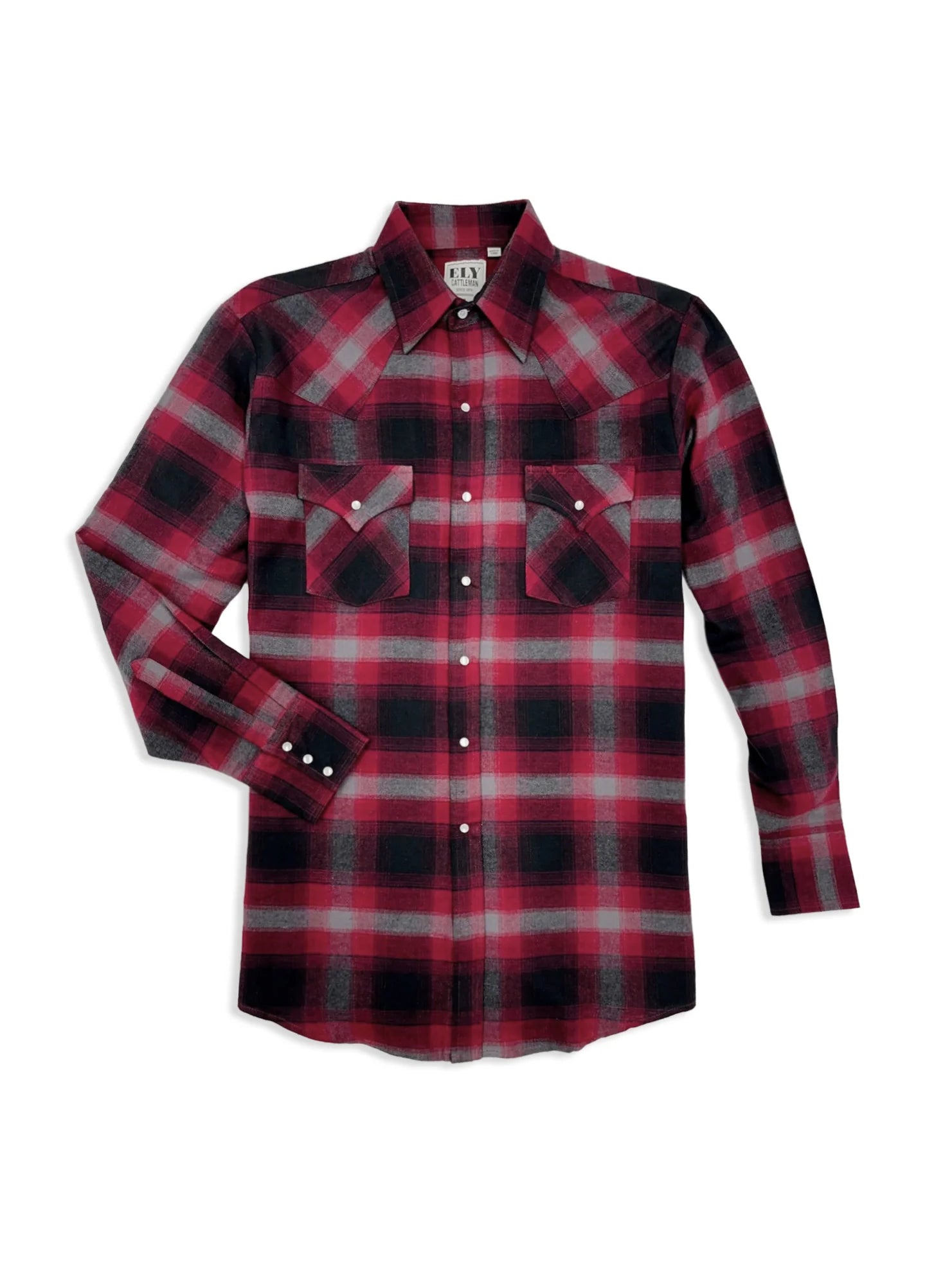 Long Sleeve Flannel Western Snap Shirt-Red/Black Flannel