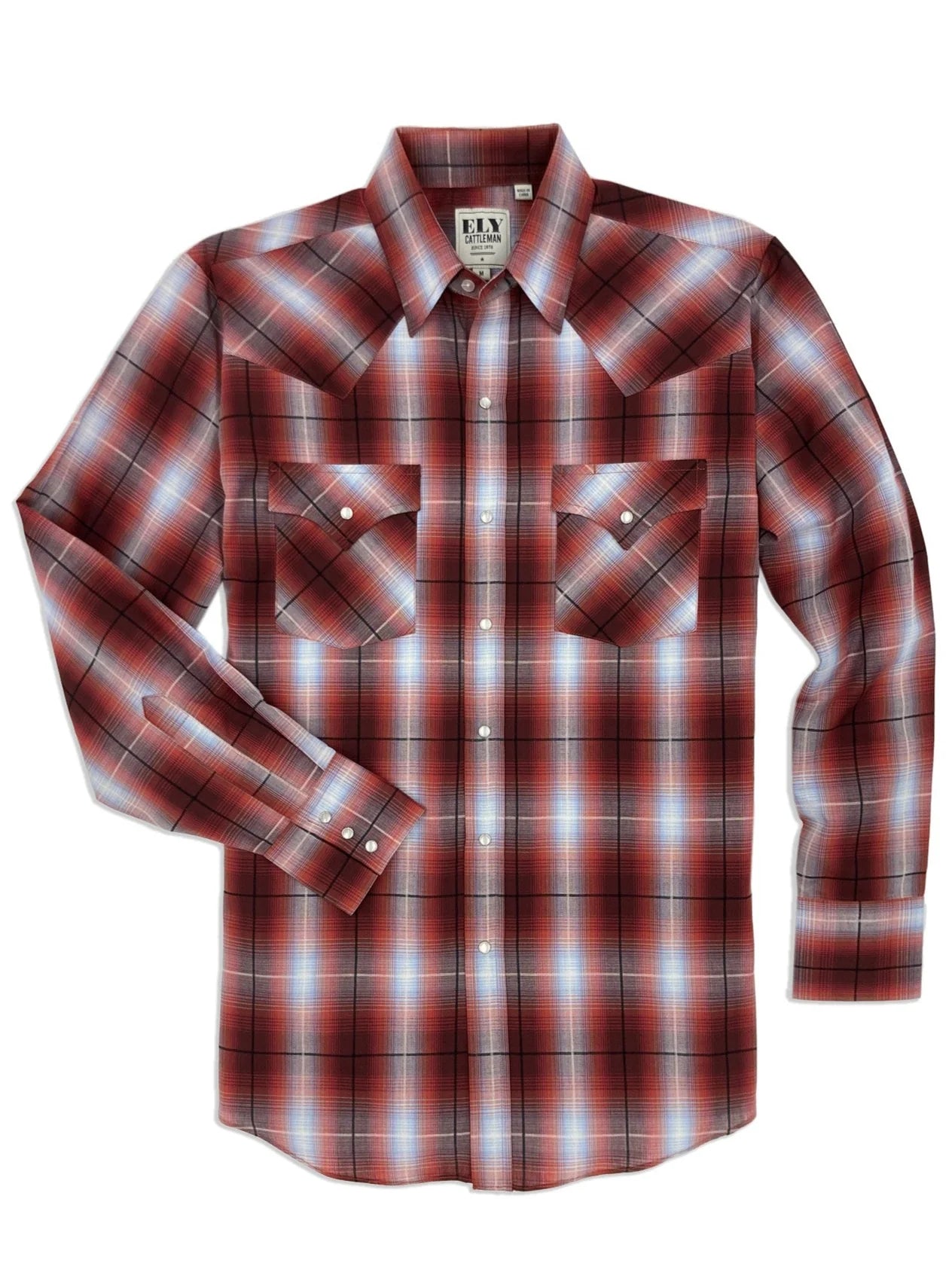 Long Sleeve Textured Plaid Western Snap Shirt - Burgundy/White Plaid