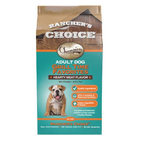 Rancher's Choice Grill Time Favorites dog food formula is packed with all the nutrition you dog needs for a complete balanced diet. With high quality ingredients, highly digestible proteins, and a hearty meat flavor, there is no stopping him from devouring every last bite.
